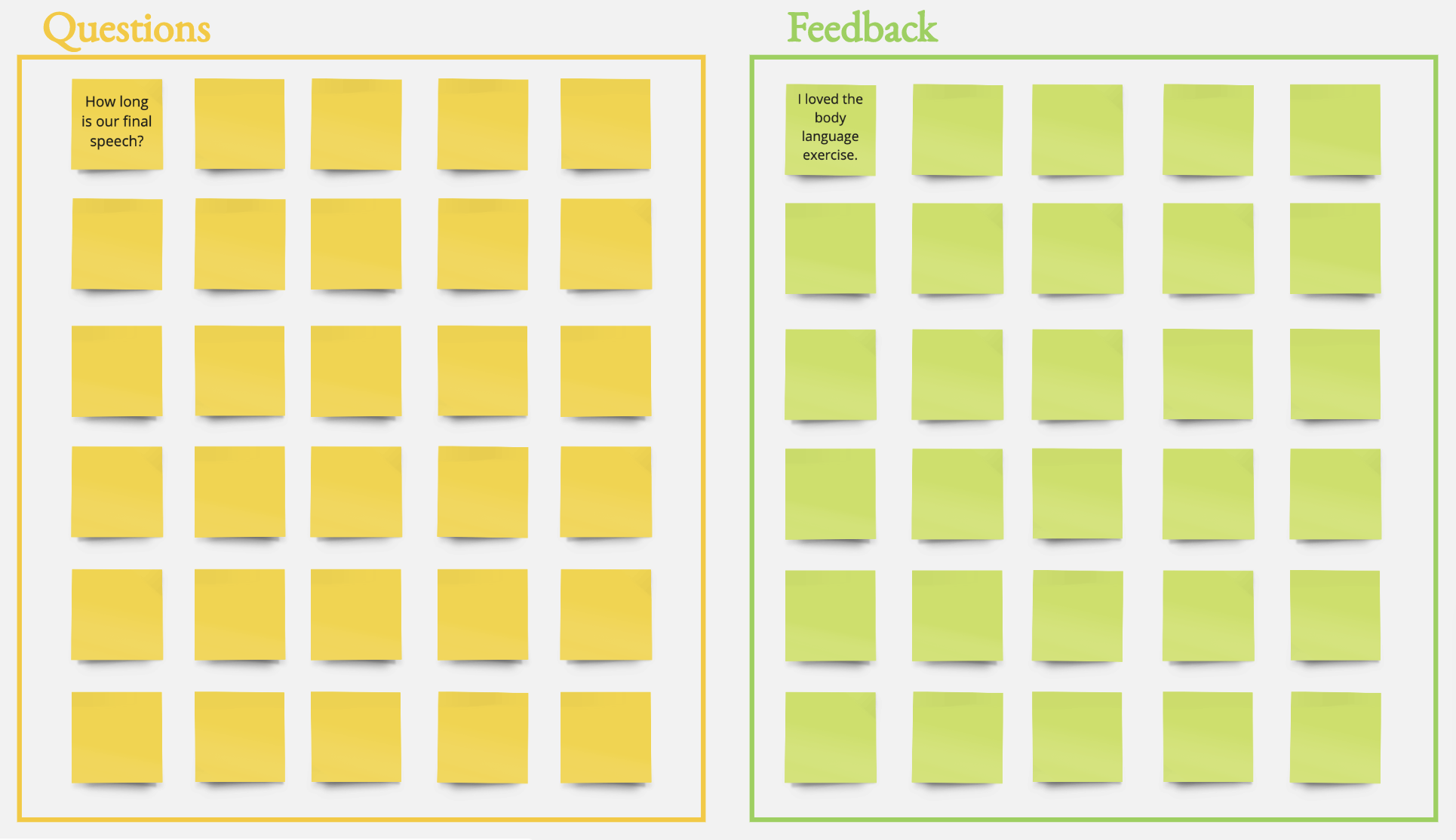 3. For feedback, some feedback might require immediate attention, discussion, or changes in plans. Other feedback can be noted and saved by the facilitator. Keep in mind, everyone can see feedback on shared boards.